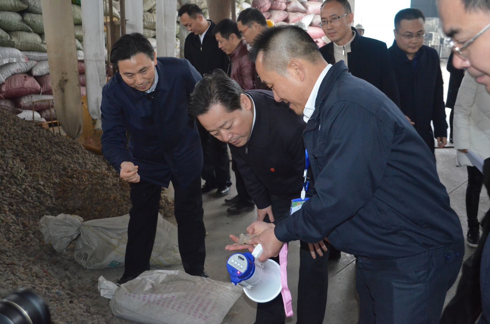 虢正貴書記一行參觀了公司產(chǎn)品展示廳、五倍子倉(cāng)庫(kù)及生產(chǎn)車間,認(rèn)真聽取了總經(jīng)理吳海錕關(guān)于我公司生產(chǎn)經(jīng)營(yíng)情況、環(huán)保工程和未來發(fā)展規(guī)劃的匯報(bào);察看了五倍子原材料儲(chǔ)備情況,并重點(diǎn)詢問了公司產(chǎn)品用途、產(chǎn)品銷售、五倍子種植基地的情況。